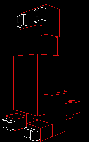 Here the fins on the back are visible because they are drawn after the body, the shadow is drawn on top of the monster because it is drawn last. Both legs are visible and the eyes just look really weird.