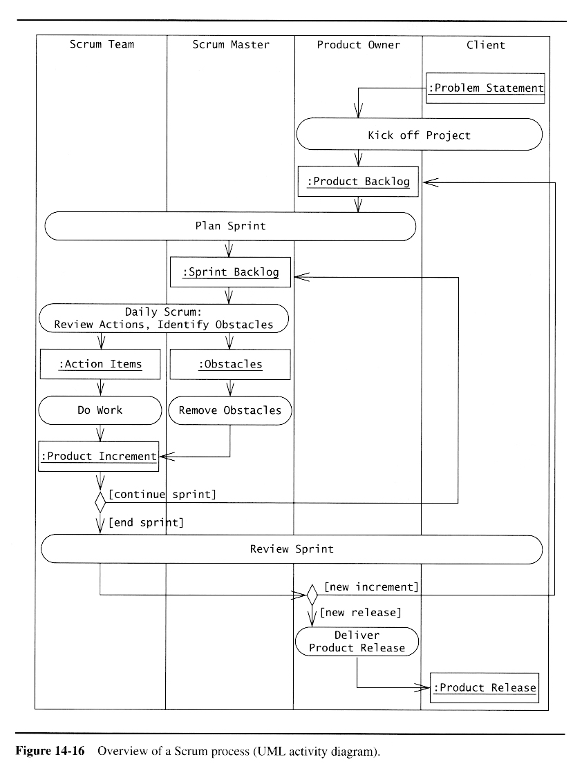Activities and deliverables, as shown in an activity diagram, with references to Bruegge & DuToit chapters: