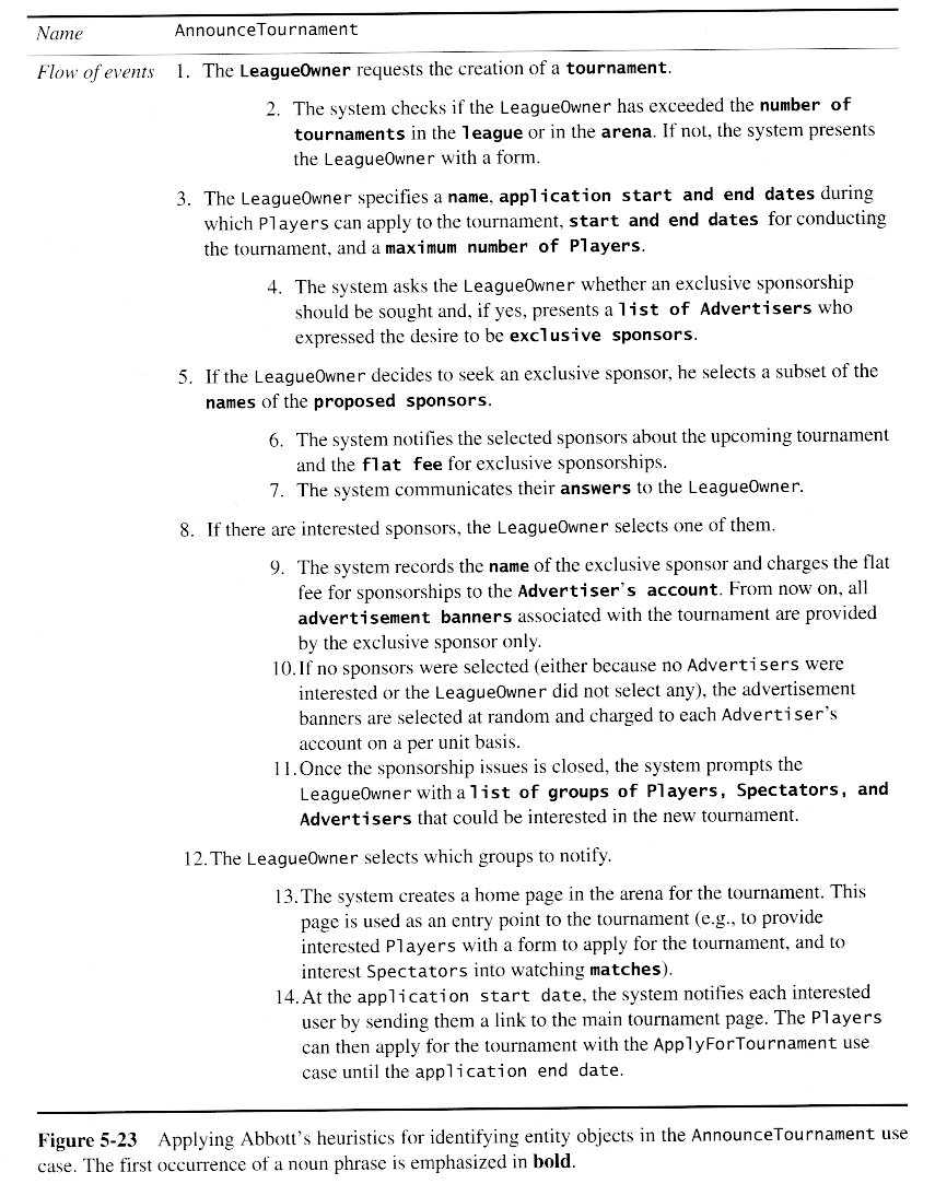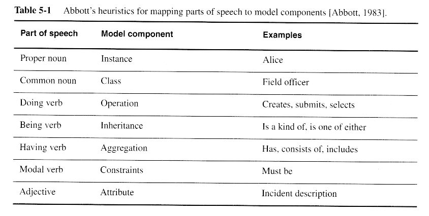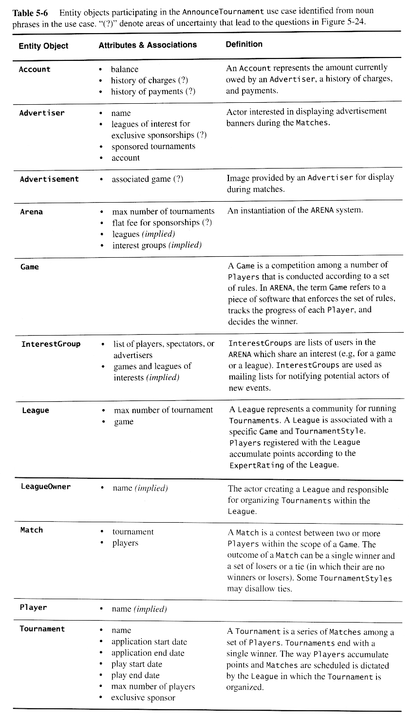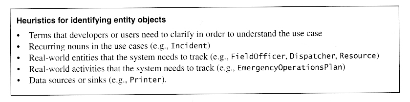 - One common approach to identifying entity objects involves grammatical analysis of the project description, scenarios, and use-cases: