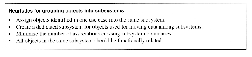 Once a preliminary set of classes and their relationships to each other have been identified, the next step is to break the overall system down into suitable subsystems, based on the structure of the class diagram, the semantics of the problem, and commonly used architectures.