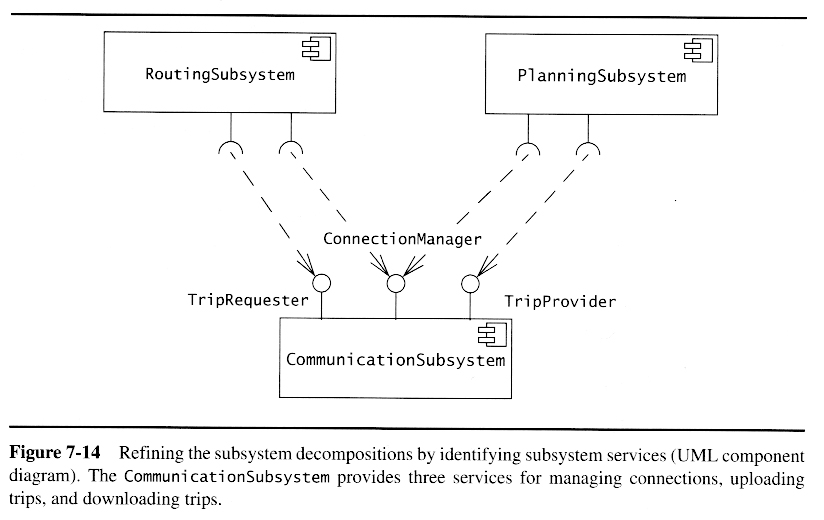 - A subsystem is a collection of classes that serves as a replaceable part of the system, with a well defined interface to the rest of the system, and a well-defined set of responsibilities or services provided by the subsystem.