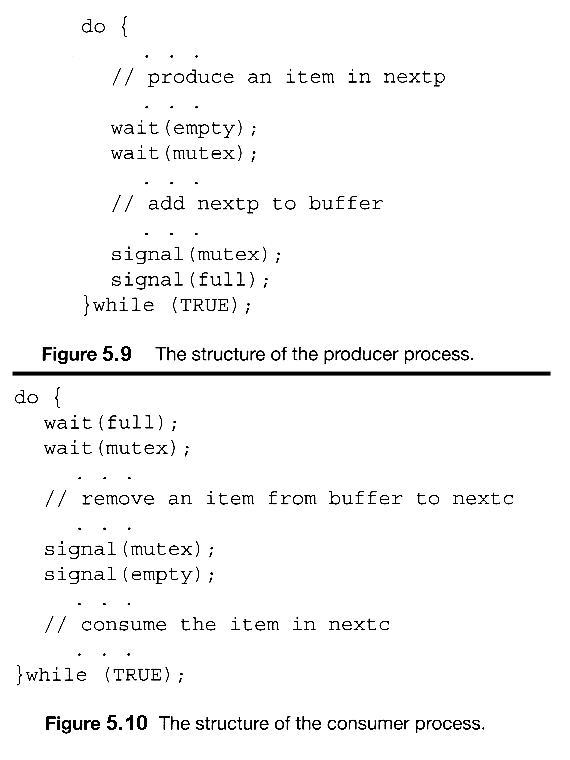 Figures 5.9 and 5.10 use variables next_produced and next_consumed5.7.2 The Readers-Writers Problem