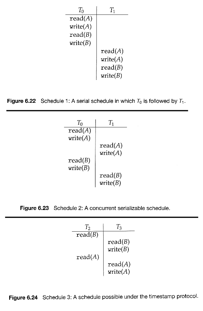 - Figure 6.22 below shows a schedule in which transaction 0 reads and writes data items A and B, followed by transaction 1 which also reads and writes A and B.