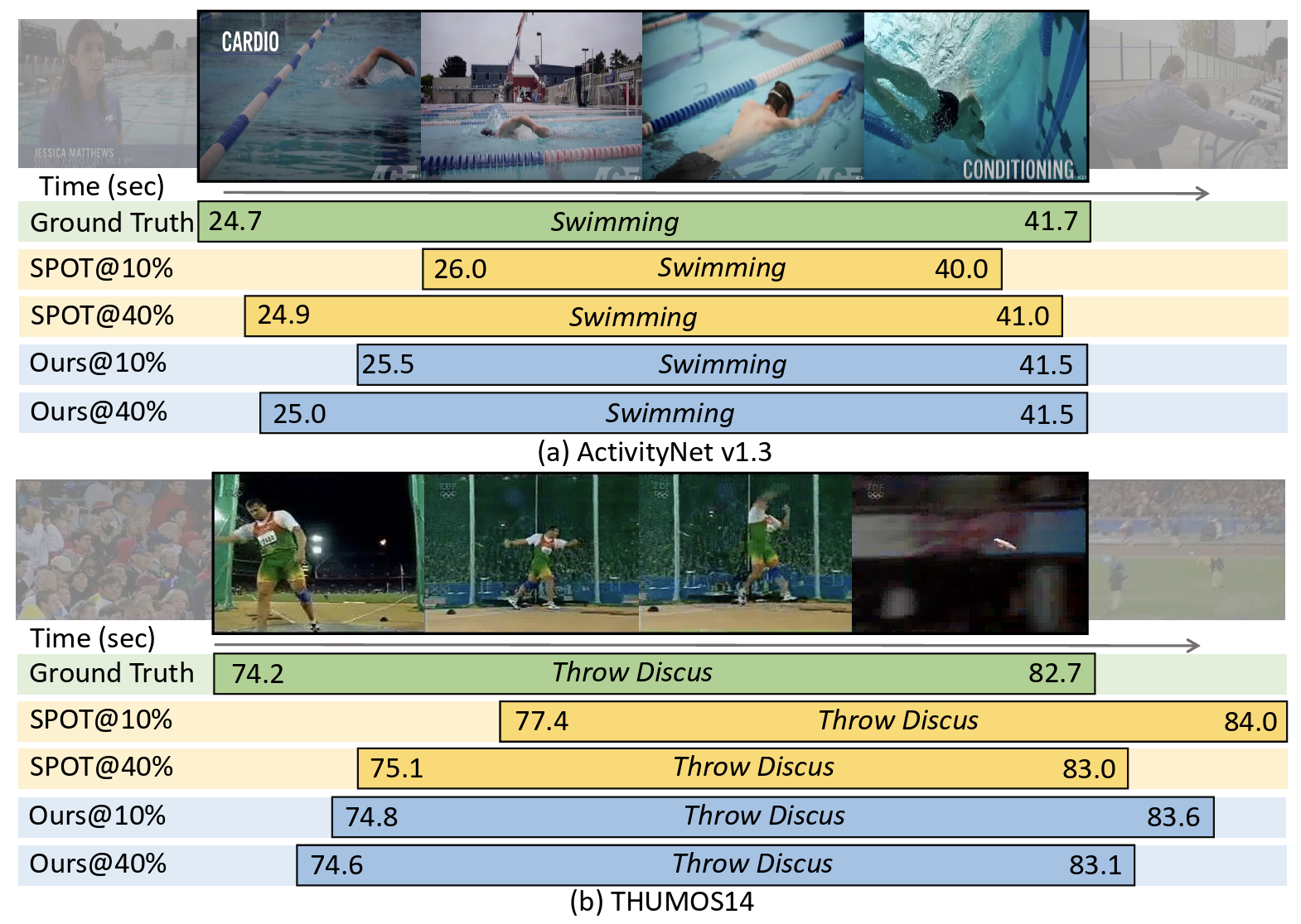 Semi-Supervised Temporal Action Localization (SS-TAL) aims to improve the generalization ability of action detectors with large-scale unlabeled videos. Albeit the recent advancement, one of the major challenges still remains: noisy pseudo labels hinder efficient learning on abundant unlabeled videos, embodied as location biases and category errors. In this paper, we dive deep into such an important but understudied dilemma. To this end, we propose a unified framework, termed Noisy Pseudo-Label Learning, to handle both location biases and category errors. Specifically, our method is featured with (1) Noisy Label Ranking to rank pseudo labels based on the semantic confidence and boundary reliability, (2) Noisy Label Filtering to address the class-imbalance problem of pseudo labels caused by category errors, (3) Noisy Label Learning to penalize in-consistent boundary predictions to achieve noise-tolerant learning for heavy location biases. As a result, our method could effectively handle the label noise problem and improve the utilization of a large amount of unlabeled videos. Extensive experiments on THUMOS14 and ActivityNet v1.3 demonstrate the effectiveness of our method. |